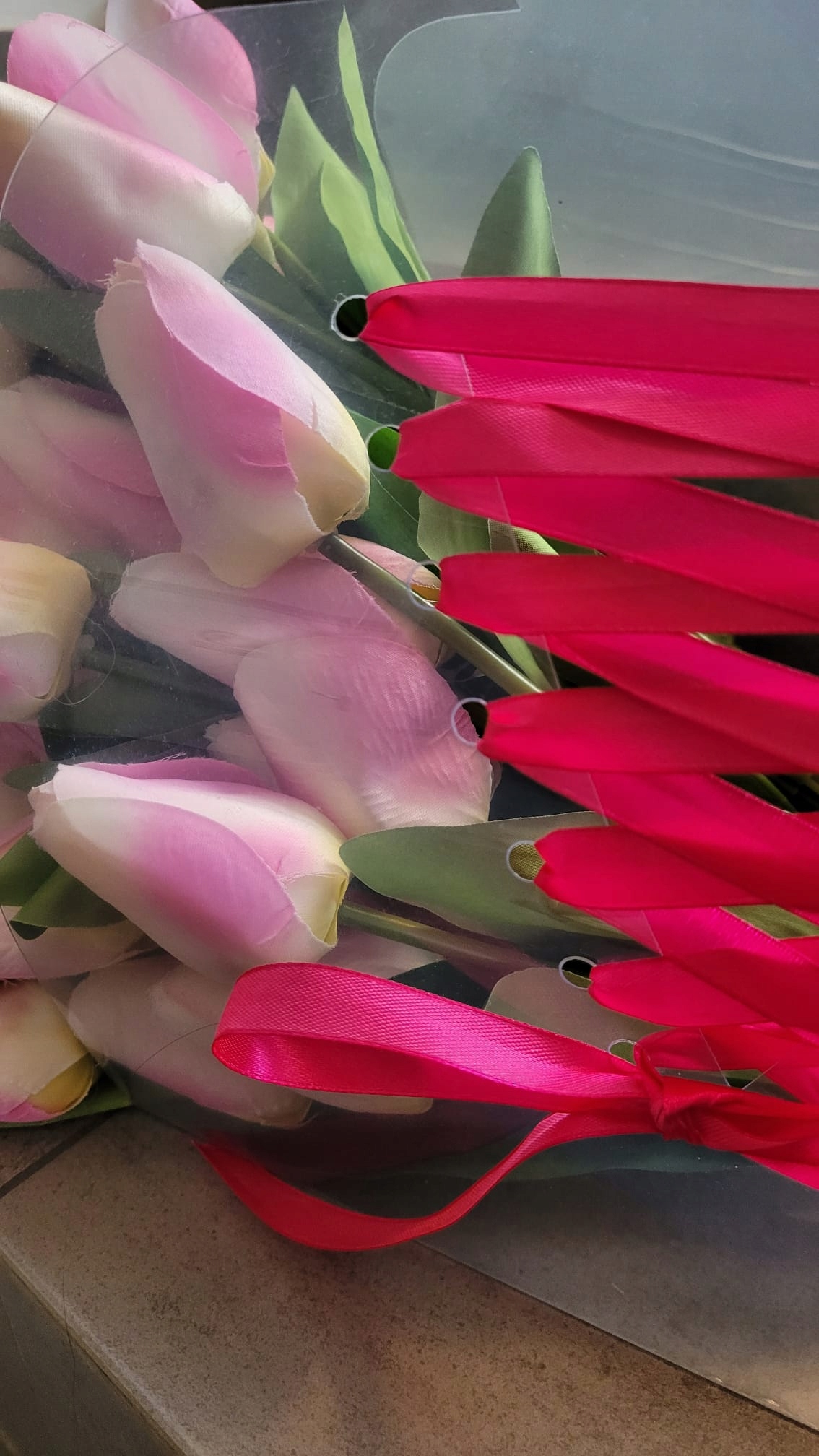 - Прикріплення букет до дна, наприклад З стрічкою, яка не дозволить квіти рухатись або падати з мішка.