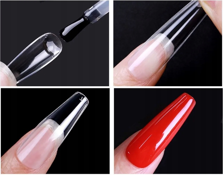 Цей метод передбачає приклеювання кінчиків нігтів до всієї нігтьової пластини. Найшвидша техніка з коли-небудь створених. Склеюємо кінчики нігтів за допомогою гібридної основи, яка загартовується в лампі. Наконечники виготовлені з дуже тонкого матеріалу ABS, який є гнучким, міцним і не ламається.