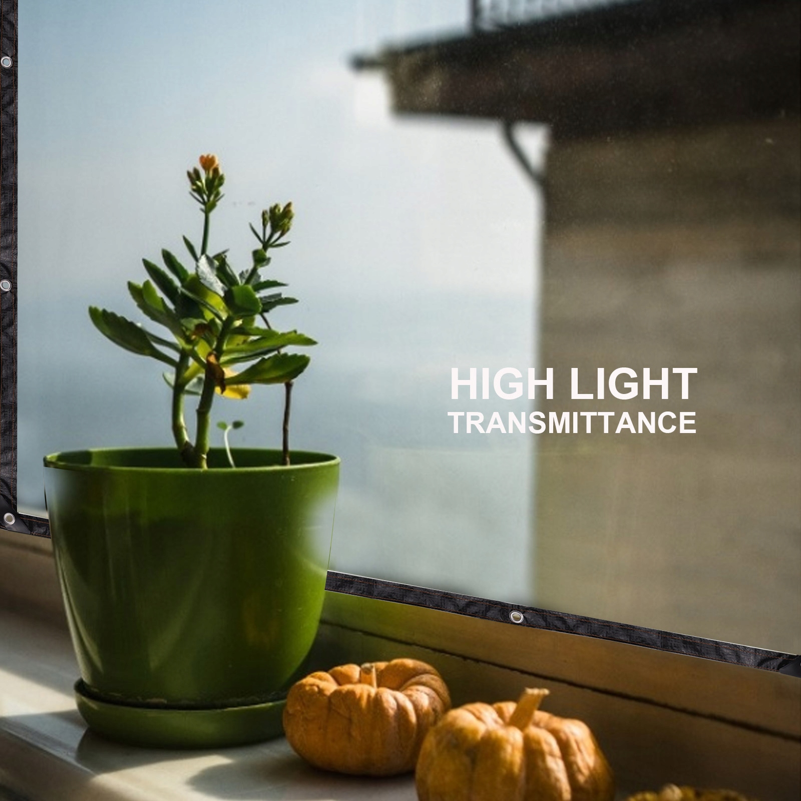 4. Прозора конструкція: використання прозорого, водонепроникного матеріалу, тому ви можете навчитися внутрішньому вмісту, не відкриваючи брезенту, високу проникність світла, хорошу теплову поведінку та зволожуючий ефект; Це ідеальний варіант, якщо ви шукаєте брезент, який буде служити вам протягом багатьох років.