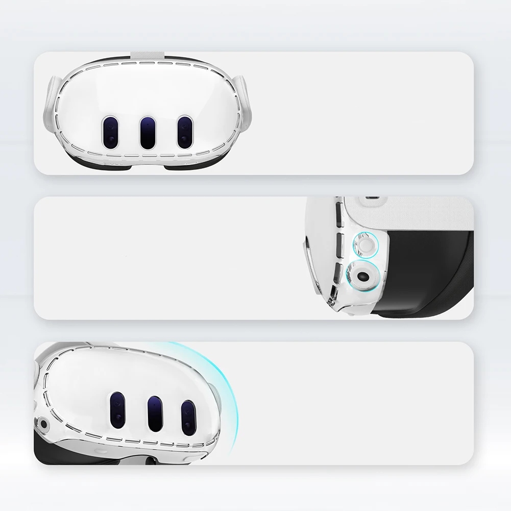 Чохол Aolion ідеально підходить до передньої панелі окулярів Meta Quest 3 VR. Його вирізи розташовані так, щоб не закривати камери чи динаміки пристрою. Завдяки цьому він ідеально захищає його від пошкоджень, не знижуючи при цьому його функціональність!
