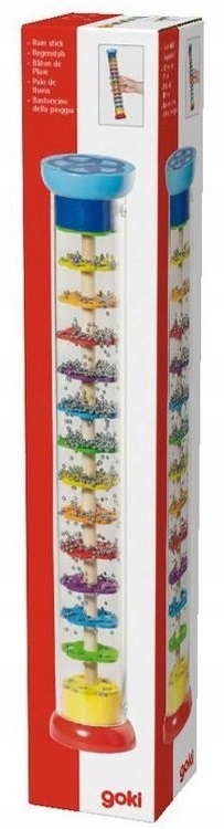 Виготовлений із високоякісного якісне дерево , розписана вручну та лакована музична трубка стане ідеальним завершальним штрихом для молодого музичного гурту або шкільного виступу. Ця модель прозора. За обкладинкою можна побачити кульки, які стрибають по дерев’яних різнокольорових рівнях, створюючи характерний звук дощу. Залежно від швидкості, з якою обертається труба, дощ може бути різної інтенсивності. Інструмент також часто використовується як типовий маракас.