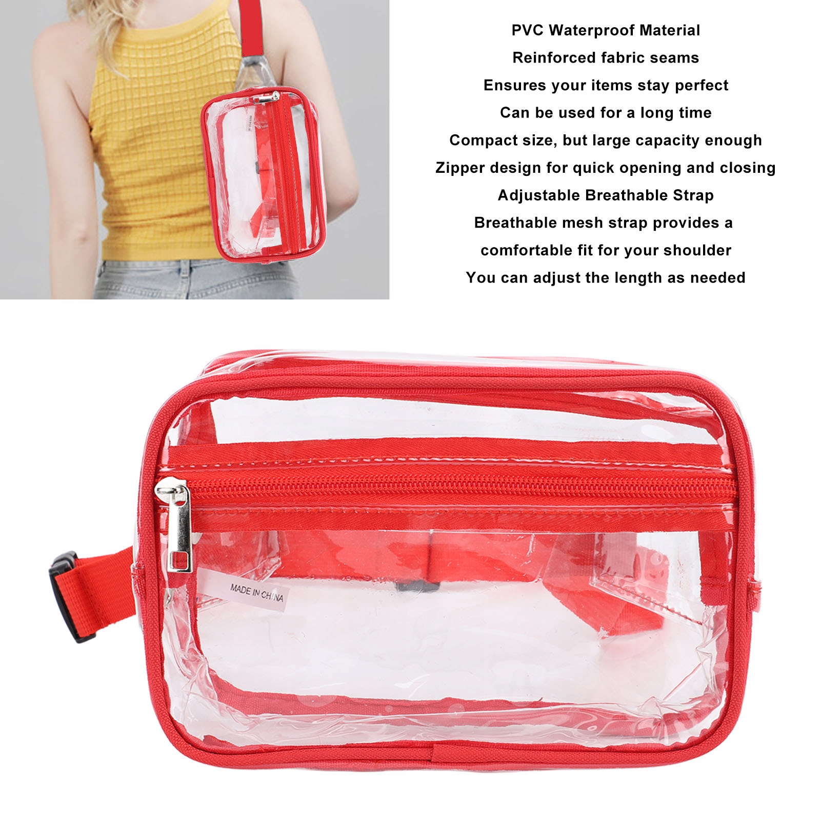 4. Зручно: ця поясна сумка прозора з усіх боків, ви можете легко пройти перевірку безпеки в аеропорту або на воротах стадіону. І швидко бери те, що хочеш.