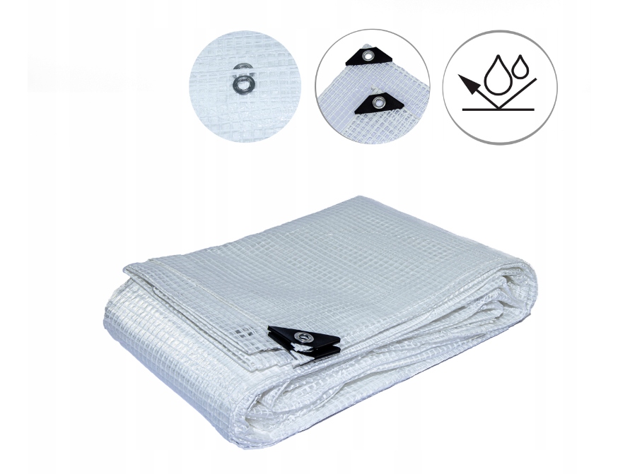 Брезент виготовлено з поліетиленової тканини PE, тобто матеріалу стійкого до впливу вітру та води b> або низькі температури. Крім того, він також має УФ-стабілізацію.