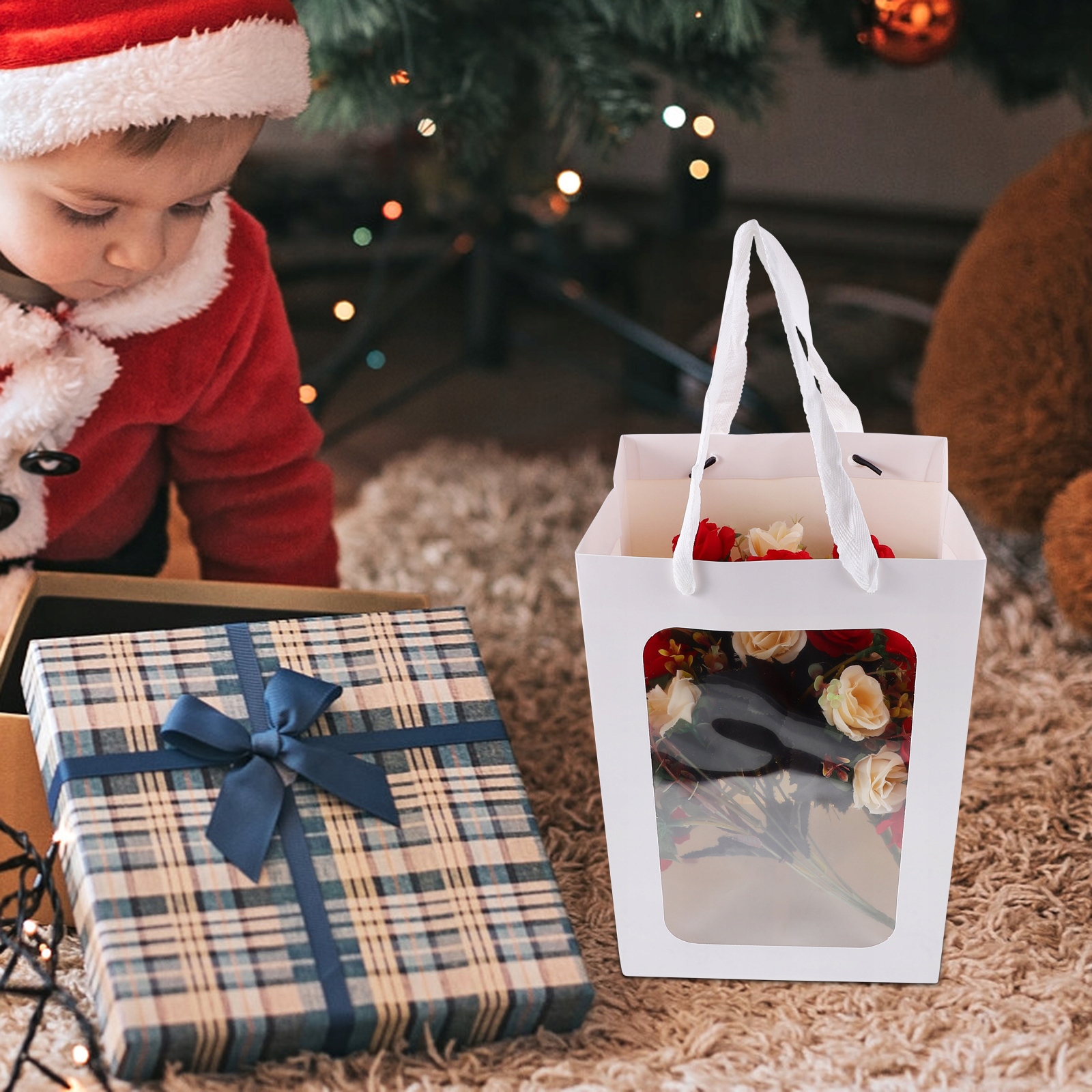 ПРОЗОРНІ МІШКИ ДЛЯ ПОДАРУНКІВ ПАПЕРОВА СУМКА З ВІКОНЦЕМ ДЕНЬ СВЯТОГО ВАЛЕНТИНА КВІТКА НАРЕЧЕНА