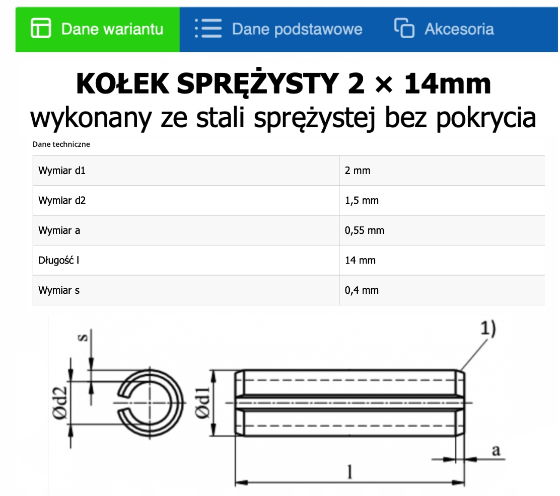 Еластичний дюбель, посилений, виготовлений відповідно до стандарту DIN 1481 еластичної сталі без покриття. Для дюбелів із зовнішнім діаметром з 10 мм конфігурація з однією фазою є необов’язковою і залежить від постачальника. Запропонуйте великий вибір аксесуарів для Allegro на Allegro відносно відповідних технічних параметрів (діаметр, тип тощо), серед інших Нормія, лапи, фланці, вилки, прямі вуха, ярмо, горіхи, клатчі, кінчики, датчики положення поршня тощо