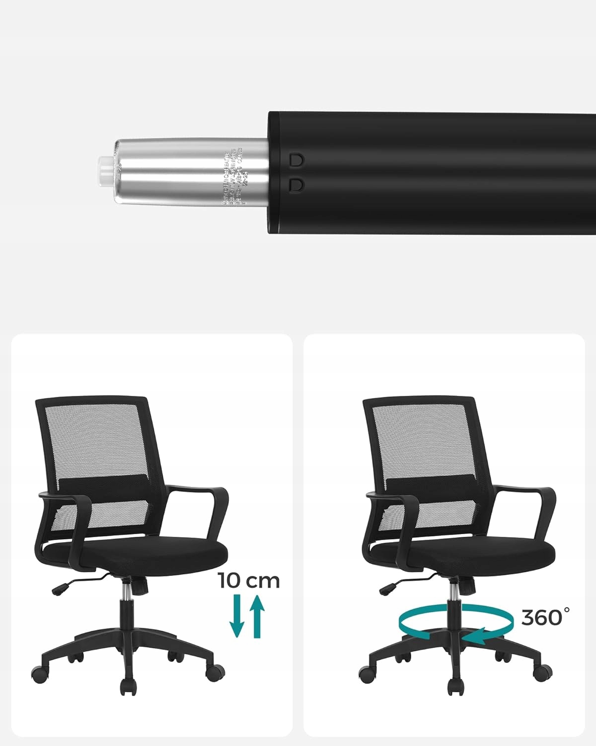 - Газова пружина [Висока якість] Ця газова пружина для офісних крісел виготовлена зі сталевого сплаву, міцна конструкція може витримувати навантаження до 200 кг і є вибухозахищеною