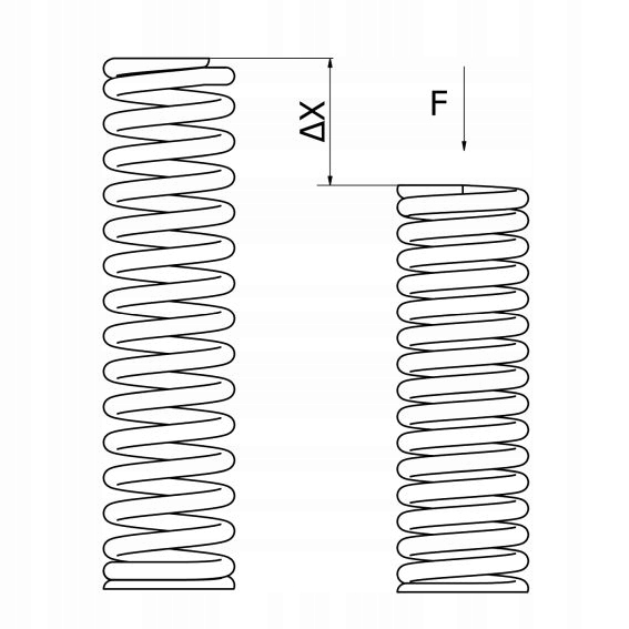 Сила «F» [кг], необхідна для прикладання до пружини, щоб вкоротити її на довжину «Δx» [см], обчислюється за формулою: