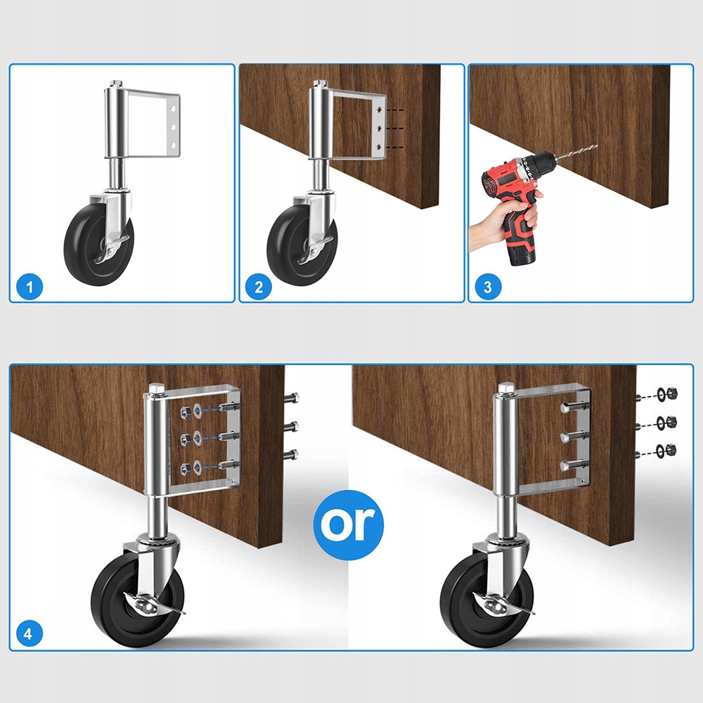 4. Легкий монтаж: Ролики оснащені міцною універсальною монтажною пластиною з трьома отворами, що дозволяє легко встановити на садові ворота. Гвинти входять в комплект. Ці ролики підходять як для дерев'яних, так і для металевих дверей.
