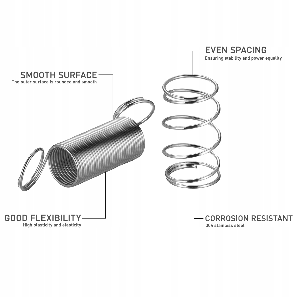 Цей елемент — це гвинтова пружина, яка забезпечує опір розтягуючій силі або навантаженню, що діє вздовж осі пружини. Коли вантаж розміщується на розтяжній пружині, подовжуючи її, пружина втягується проти навантаження, щоб повернутися до своєї початкової довжини. Ці пружини використовуються в різних сферах застосування, зокрема в автомобільних двигунах, великих приладах, медичних пристроях, електроніці та вимірювальних інструментах.