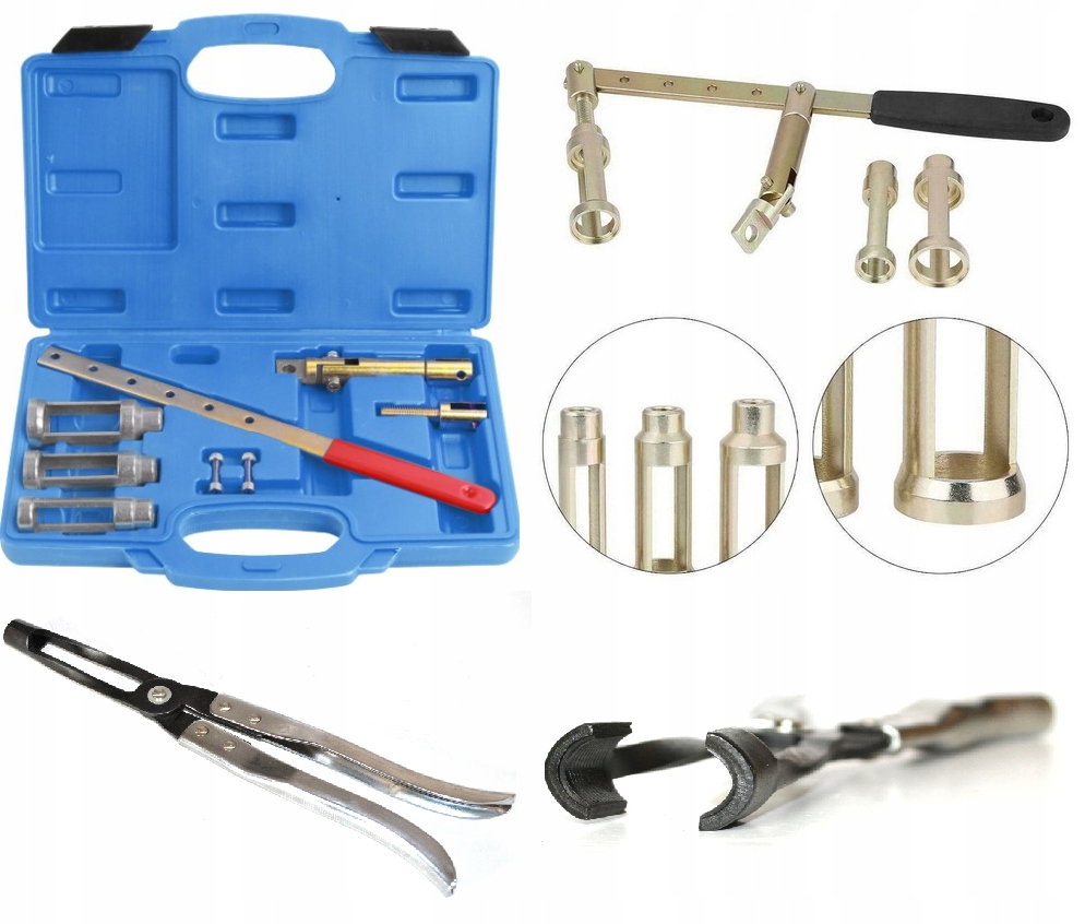 - Спеціальний набір для демонтажу та кріплення клапана та пружин клапанів, без необхідності розібрати головку циліндра.