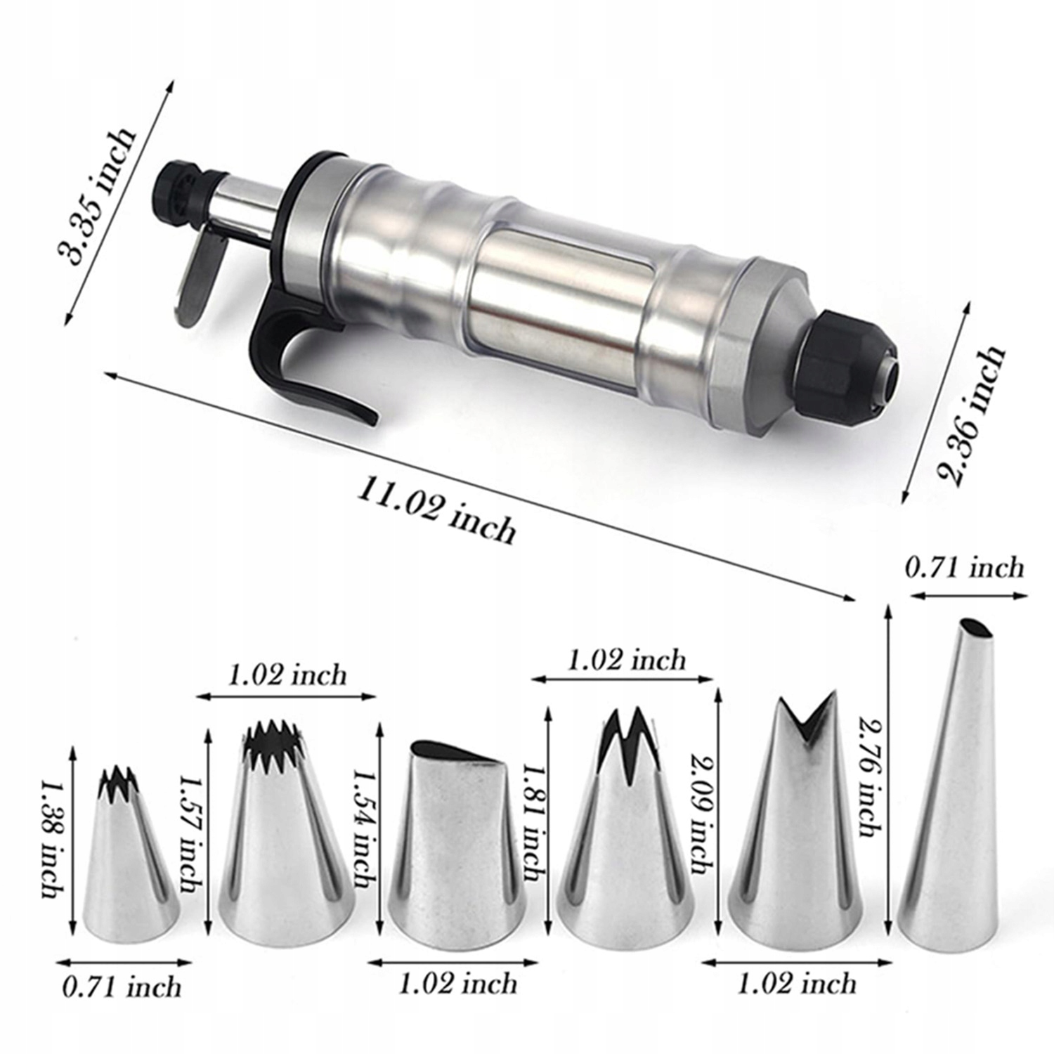 Ви отримаєте пістолет для королівської глазурі та 6 змінних насадок. Цей набір задовольнить усі ваші потреби щодо прикраси тортів, кексів і печива.