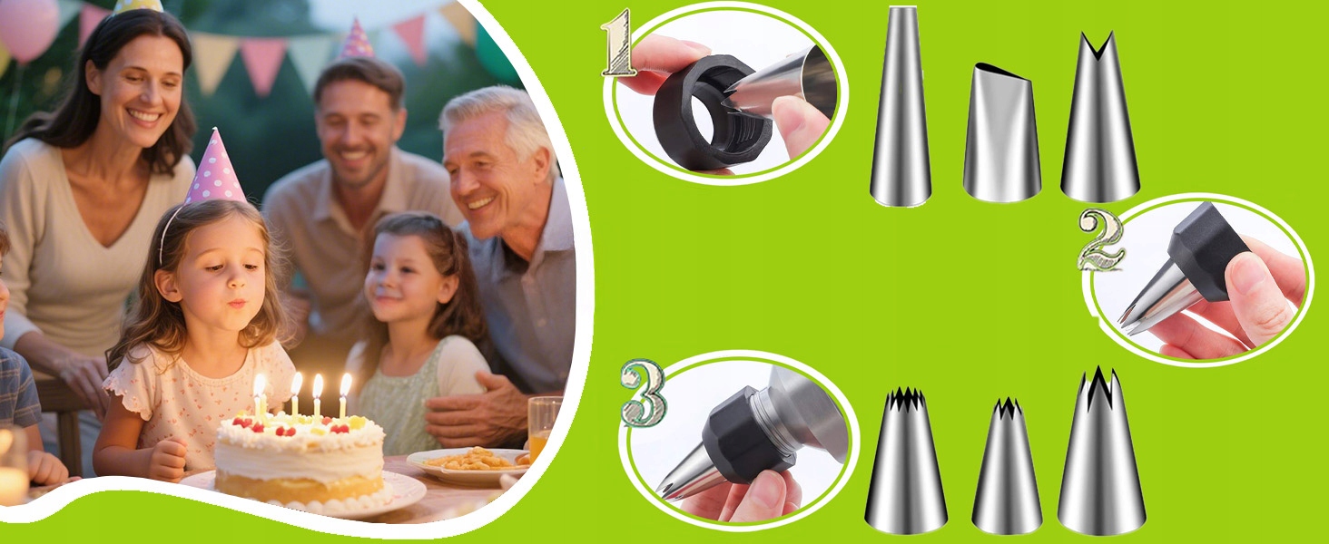 ✔️У набір входить інструмент для декорування та 6 змінних наконечників, які задовольнять різні потреби декорування.