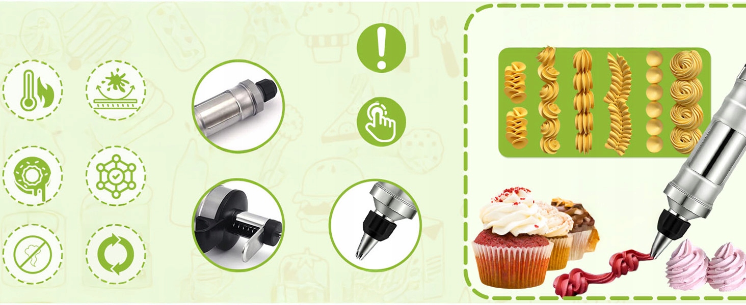 ✔️Оснащений 6 змінними наконечниками, він дозволяє створювати різноманітні візерунки, які доповнять ваші десерти та зроблять їх ще смачнішими.