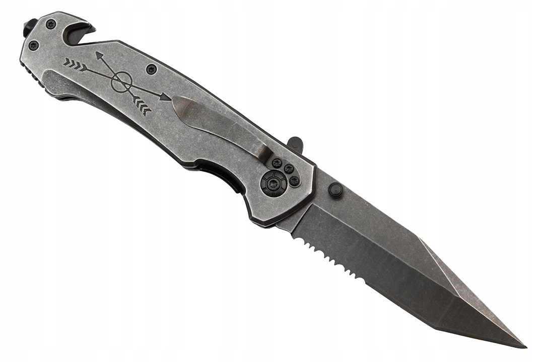 ✔️ Лезо рятувального ножа складається із загнутого гладкого краю та зубців, що ідеально підходить для розривання та різання матеріалу.