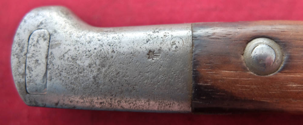 Товар, який видно на фото, добре зберігся. Клинок невідшліфований, незаточений, злегка полірований. На краю леза є позначка SAMSON WERK (трохи нерозбірлива), а на зворотному боці леза — прусська позначка. Накладки на ручки дерев'яні, оригінальні. Багнетний замок справний. На наконечнику є прусський слід.