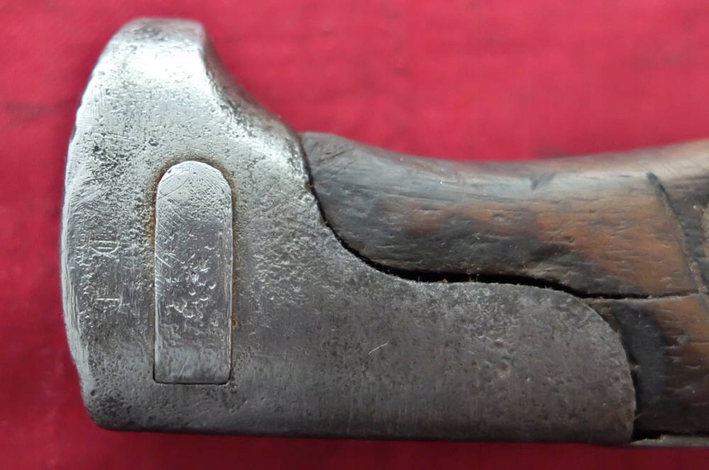 Екземпляр видно на фото. Лезо невідточене, вкрите ямками, злегка загострене. На тильній стороні леза видно прусські вістря. Рік надходження 1916. Накладки на ручки дерев'яні, оригінальні. Багнетний замок справний. На голові ледь помітні прусські проколи.