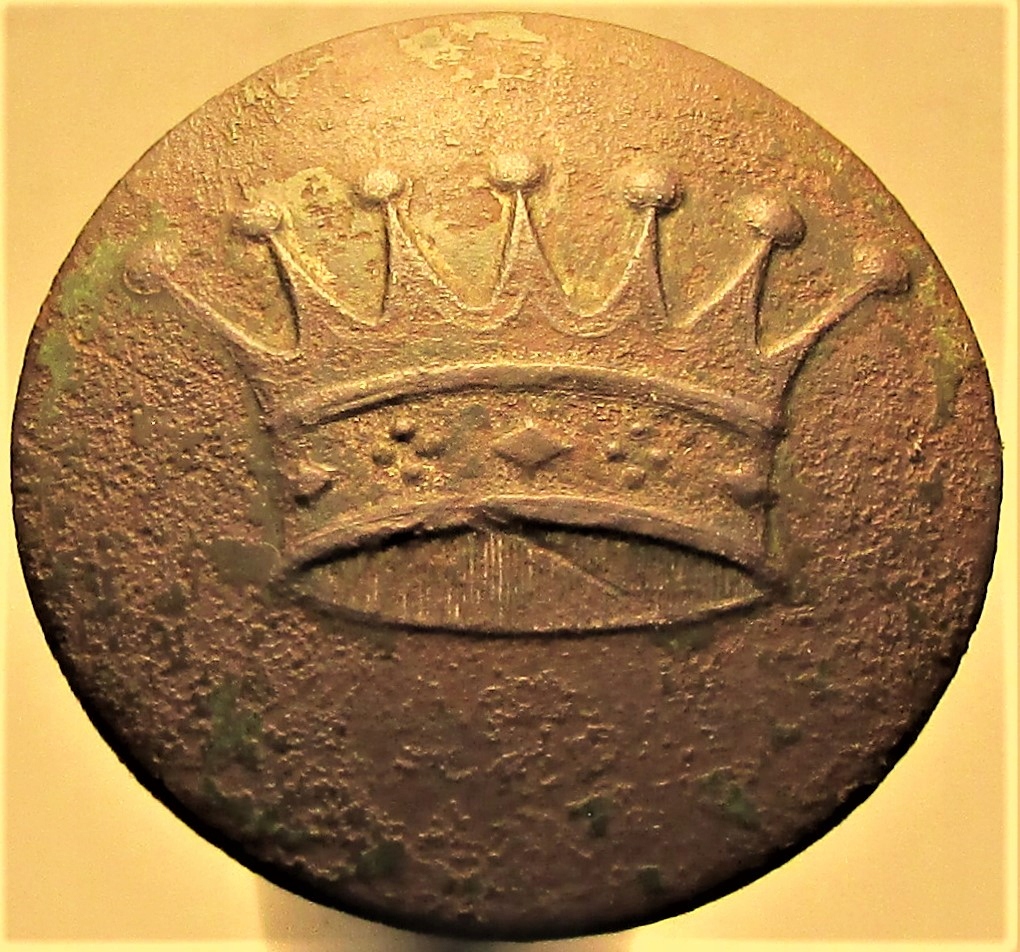 - Аверс зображено відкриту корону з сімома жезлами, які закінчуються кульками, без опуклого краю на краю ґудзика