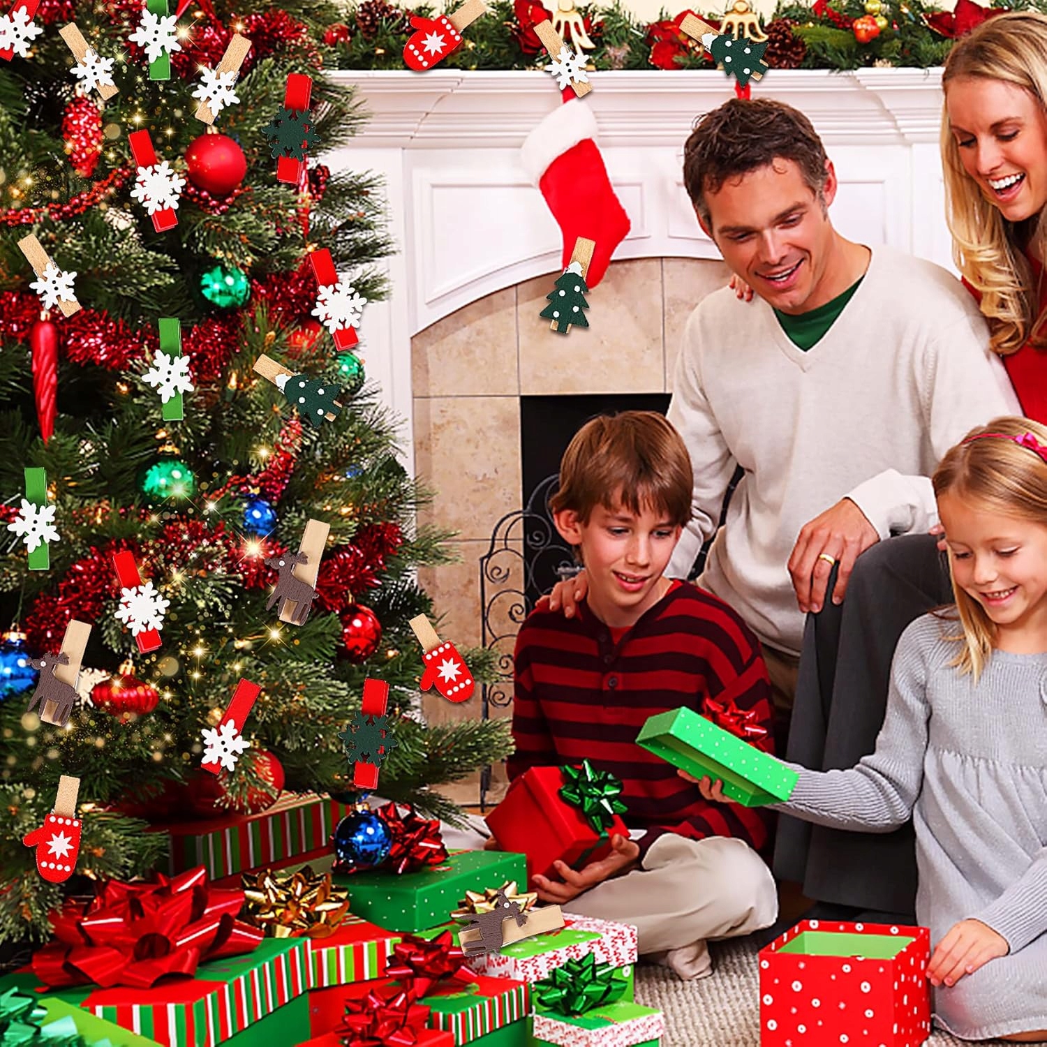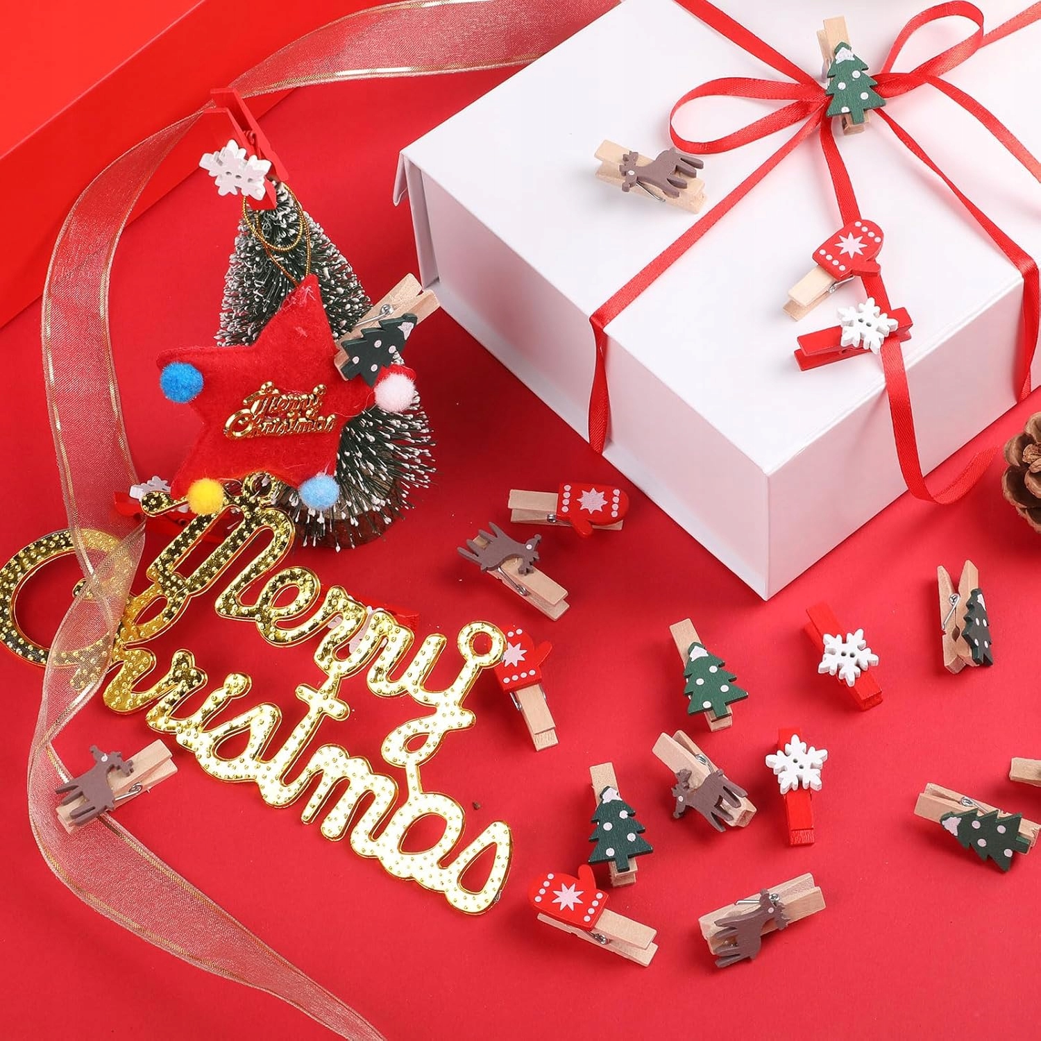 Додайте шарму своїм різдвяним прикрасам за допомогою набору дерев'яних затискачів з унікальними різдвяними візерунками. Це ідеальний спосіб прикрасити подарунки, створити свій власний адвент-календар, повісити різдвяні листівки, фотографії чи маленькі прикраси. Кожна кліпса ретельно виготовлена з натурального дерева та прикрашена чарівними елементами: оленями, ялинками, сніжинками та новорічними рукавичками.