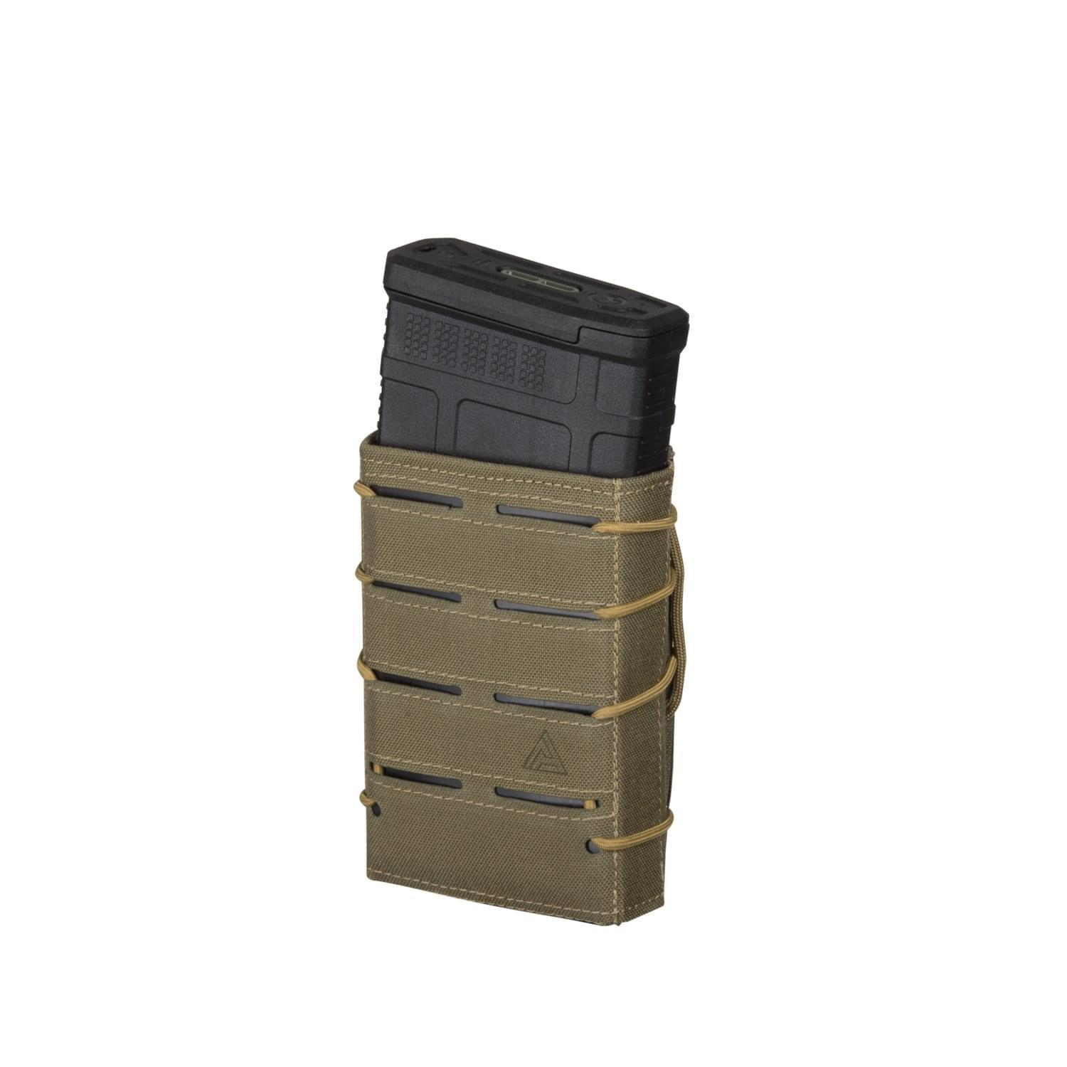 Speed Reload Rifle Pouch — це підсумок CQB, призначений для зручного носіння магазину для AR, AK або SR. Міцна конструкція кишені заснована на жорстких пластикових вставках, оброблених Cordura. Магазин запресований, а сила утримання регулюється за допомогою ударної петлі. Додатковим елементом, який запобігає випадковому випаданню магазину, є внутрішня обшивка однієї зі стін Hypalon.