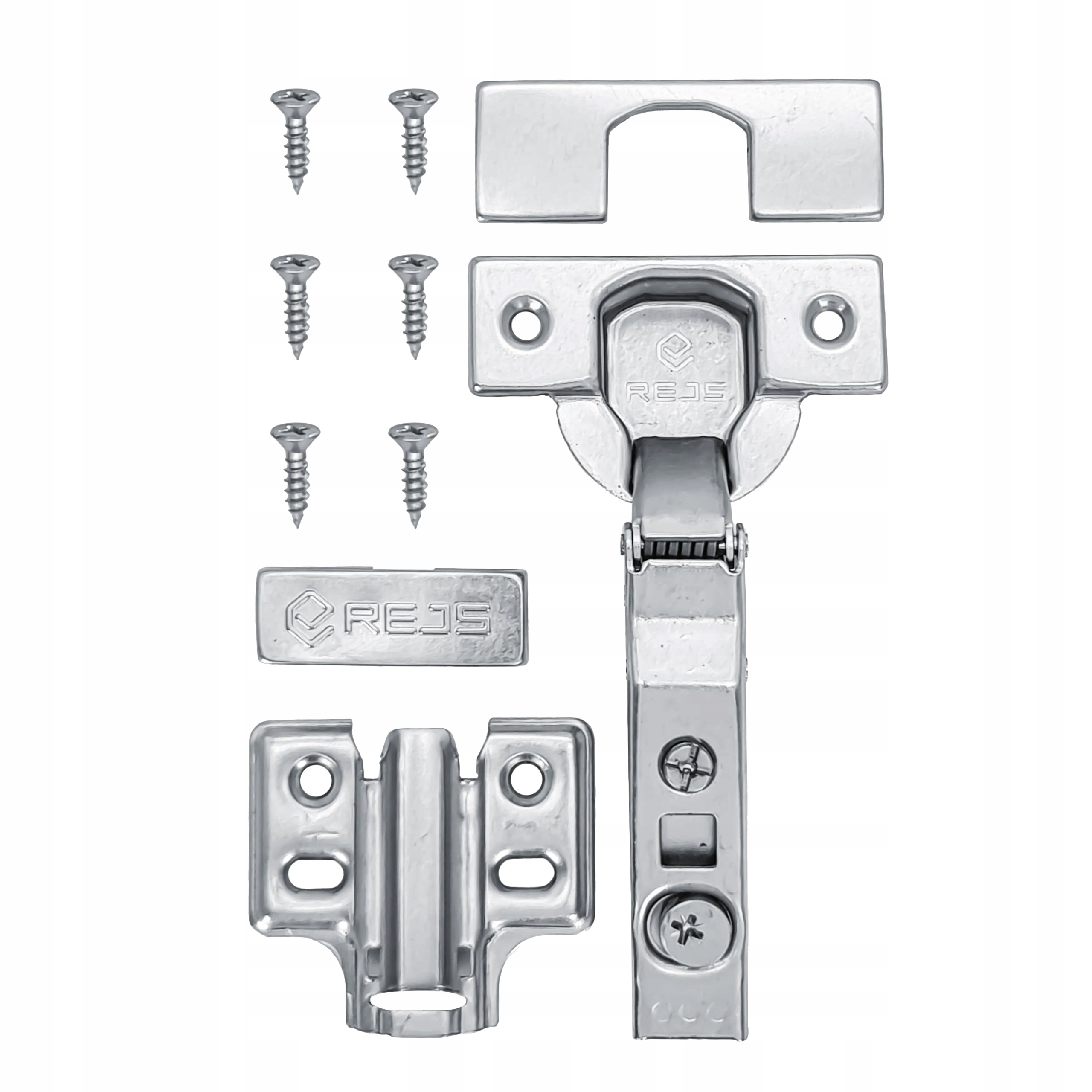 Петля пряма 110° REJS SILENT CLOSE, НАПРАВЛЯЮЧА НА 4 ГВИНТА, набір заглушок, 10 ШТ. (5 мішків по 2 петлі)