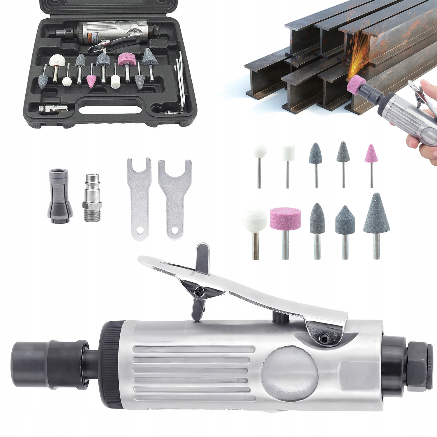 ПРЯМА ПНЕВМАТИЧНА ШЛІФУВАЛЬНА МАШИНА З 10 ШЛІФУВАЛЬНИМИ КІНЦЯМИ