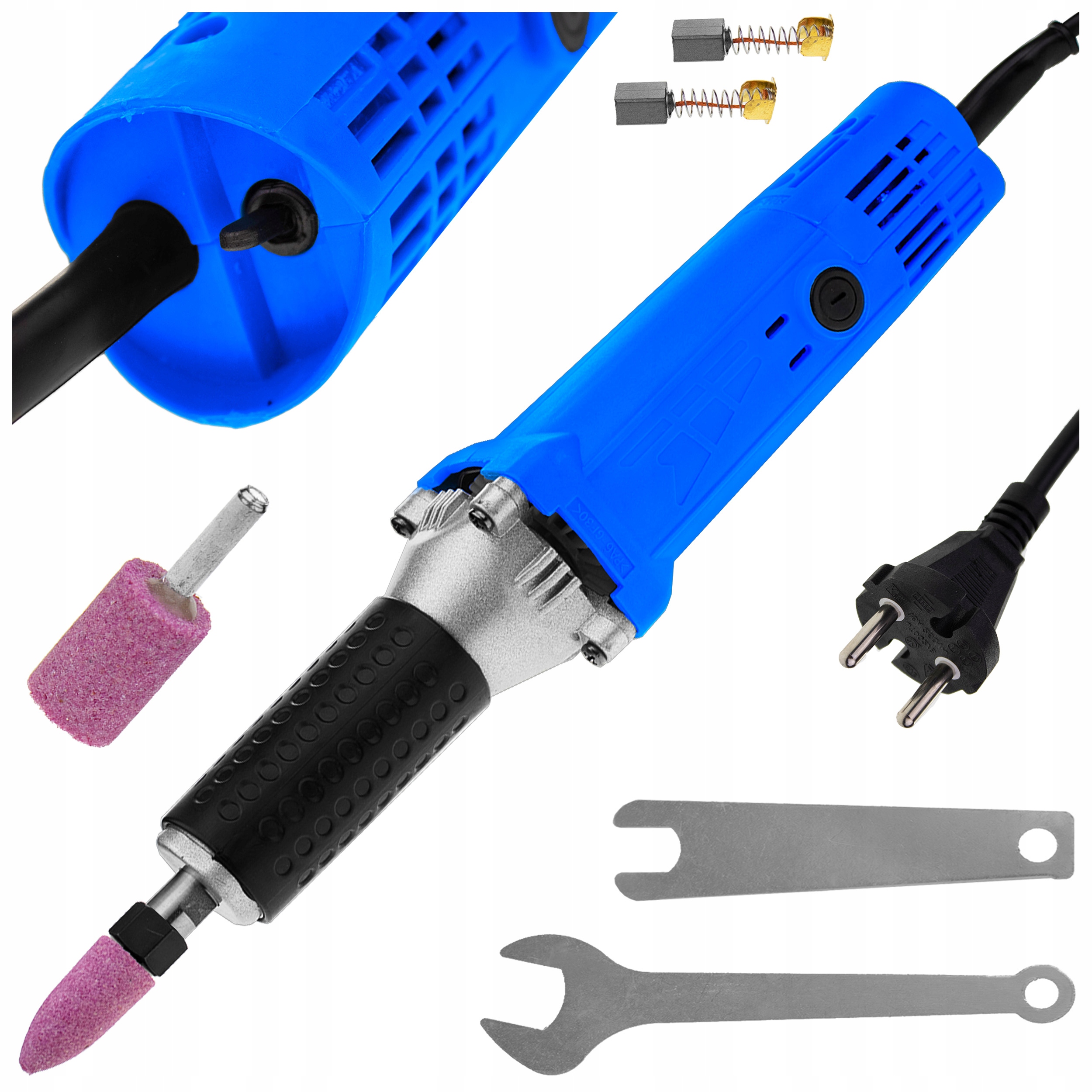 Штифтову шліфувальну машину також можна використовувати з іншими аксесуарами. з шліфувальними каменями, полірувальними дисками, дротяними щітками та спеціальними різцями з титановим покриттям.