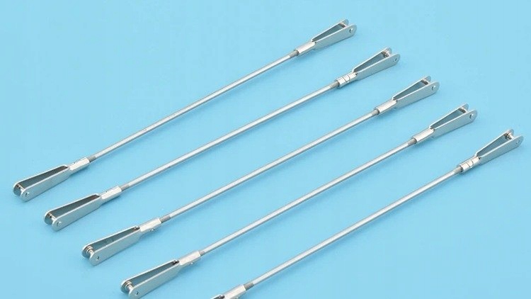 Прямий штовхач довжиною 5 см, з різьбою на обох кінцях металевими затискачами M2 – 26 мм, використовується для виготовлення моделей із бальзи RC. Надзвичайно міцний і гнучий.