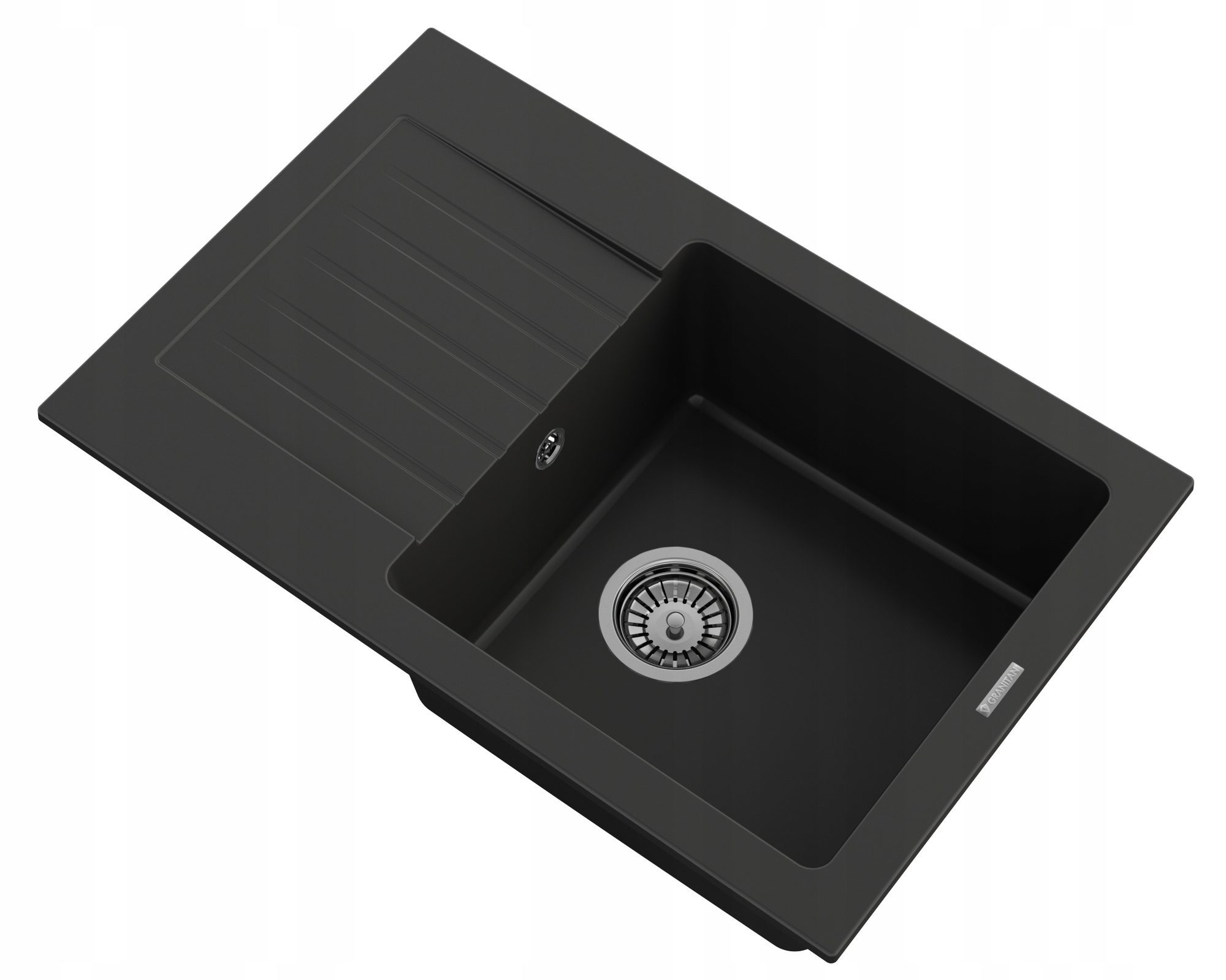 ZLEW GRANITOWY PROSOTKĄTNY JEDNOKOMOROWY DUŻY OCIEKACZ SYFON CHROM MINO