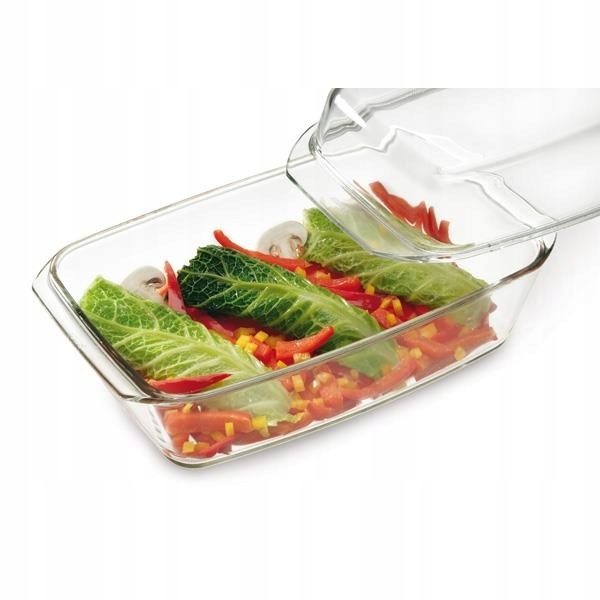 Скляна прямокутна посудина з кришкою виготовляється з високоякісної теплостійкої скла, яка стійка до температури від -40 ° С до 300 ° С і призначена для контакту з їжею. Скло Simax має високу стійкість до хімічних факторів; Він гладкий і непільгрим, ідеально прозорий і стійкий до корозії. Страва має потужність 5,4 літра, має універсальне застосування - для випічки, тушкування, випічки. Ідеально підходить для приготування здорових страв для всієї родини.