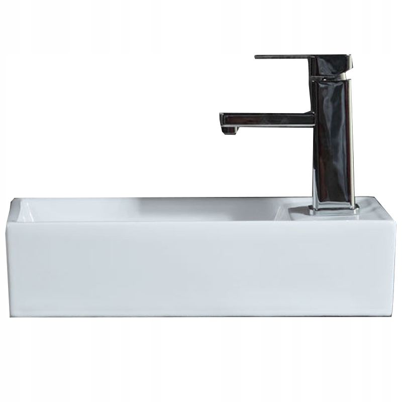 ПРЯМОКУТНИЙ КЕРАМІЧНИЙ УМИВАЛЬНИК, БІЛИЙ, РОЗМІЩЕНИЙ НА СТІЛЬНИЦІ 40x22 СМ
