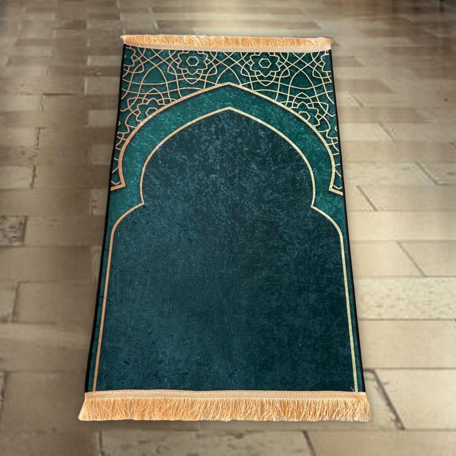 Класичний дизайн: цей прямокутний молитовний килимок виготовлено з високою точністю та розроблено з вишуканими візерунками та бахромою для ідеальної текстури. Забезпечує комфорт навіть на твердій поверхні під час молитви.