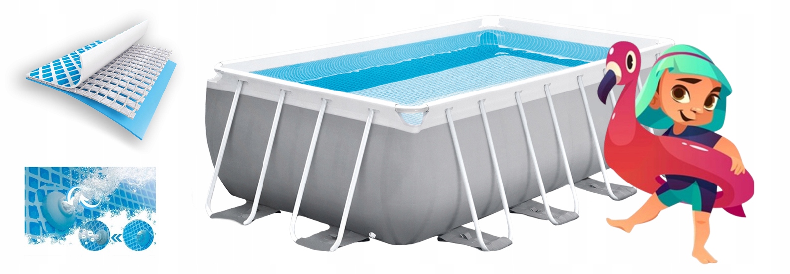 Конструкція цього басейну базується на твердій сталевій рамі , яка гарантує довговічність та стабільність навіть при інтенсивному використанні. Розміри близько 488 см завдовжки та 244 см завширшки роблять це відмінною пропозицією як для малих, так і для великих садів. Басейн має вражаючу висоту 107 см, що дозволяє вільного руху під час плавання та витонченості стрибків води.