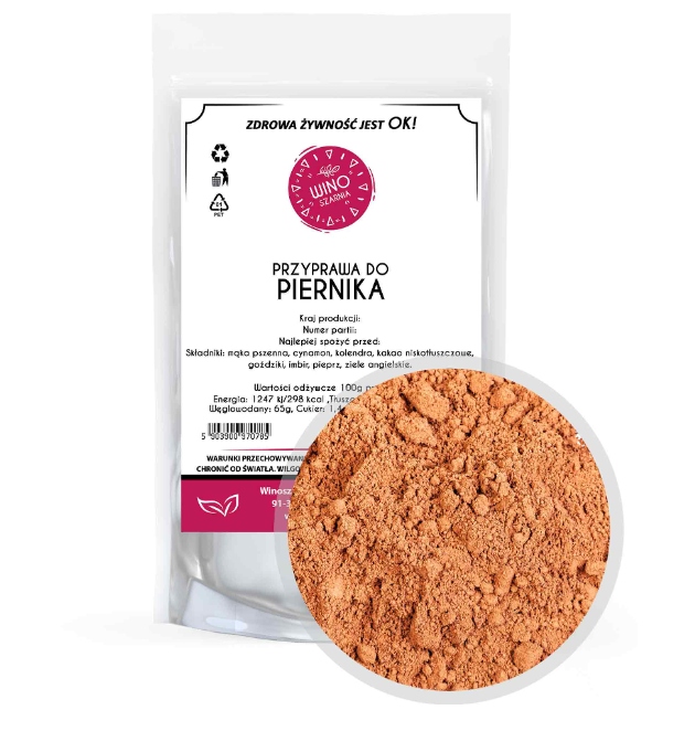 - Інгредієнти суміші: борошно пшеничне, кориця, коріандр, какао нежирне, гвоздика , імбирний перець, запашний перець