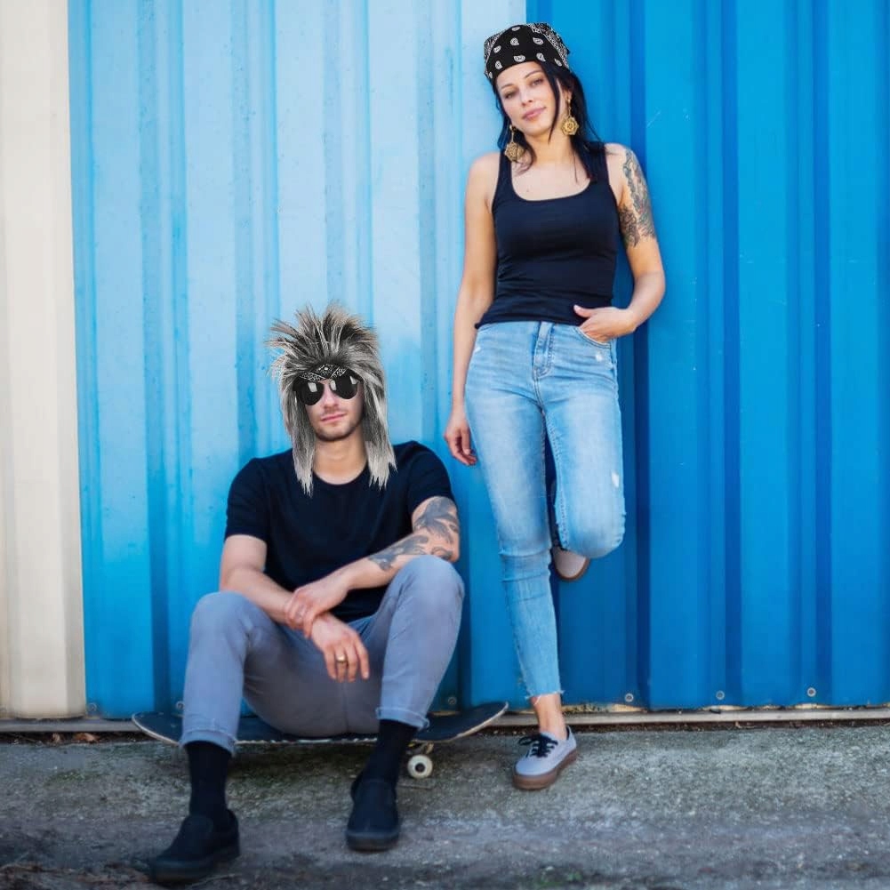 PRZEBRANIE AKCESORIA RETRO LATA 70 i 80 BANDANA BANDANY OKULARY PERUKA