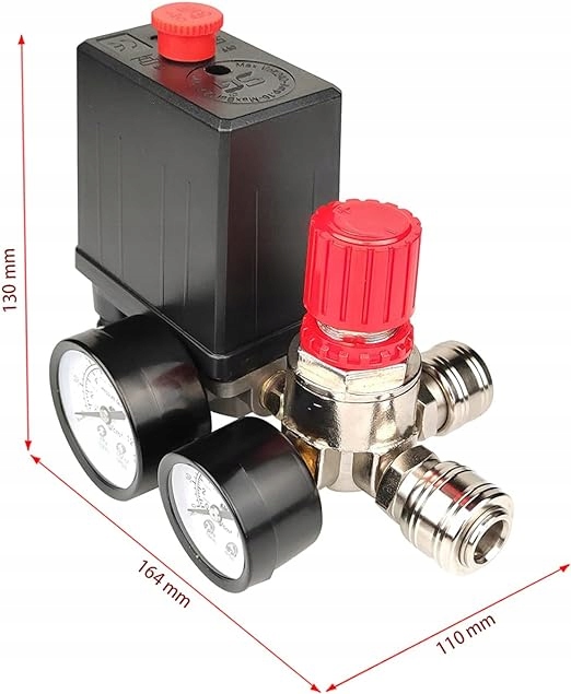 - Перемикач повітряного компресора Перемикач повітряного компресора має запобіжний клапан 0,64 см із 2 манометрами. З важелем увімкнення/вимкнення. Поршневе ущільнення з V-подібним ущільнювальним кільцем, хороше ущільнення, зносостійке та стабільне.