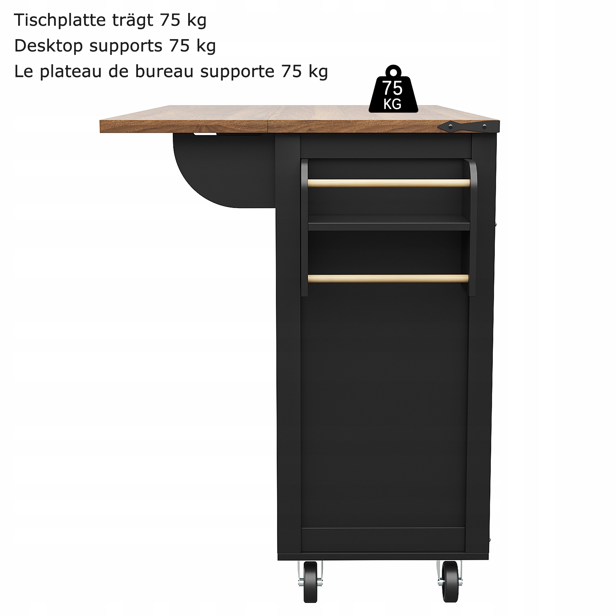 - Розширюється стільниця (45 см → ширина 73 см) швидко перетворюється з компактного зберігання в в просторі їдальні/бар - ідеально для малих квартир 5. wheels (2 closed) allows you to move it from the kitchen to the balcony to morning coffee or evening tapas