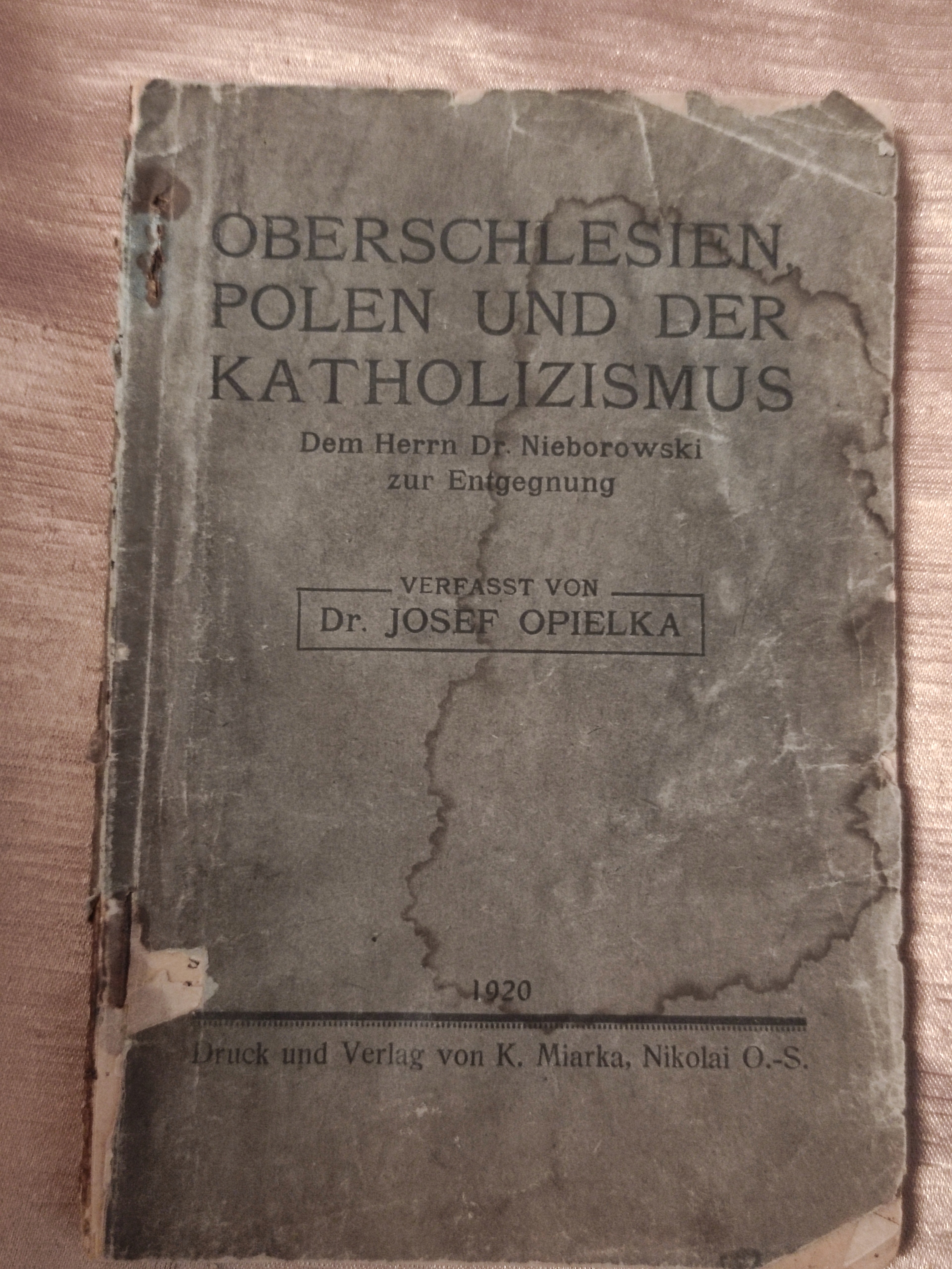 Przedwojenna książka Górny Śląsk Polska i katolicyzm Dr. Josef Opielka
