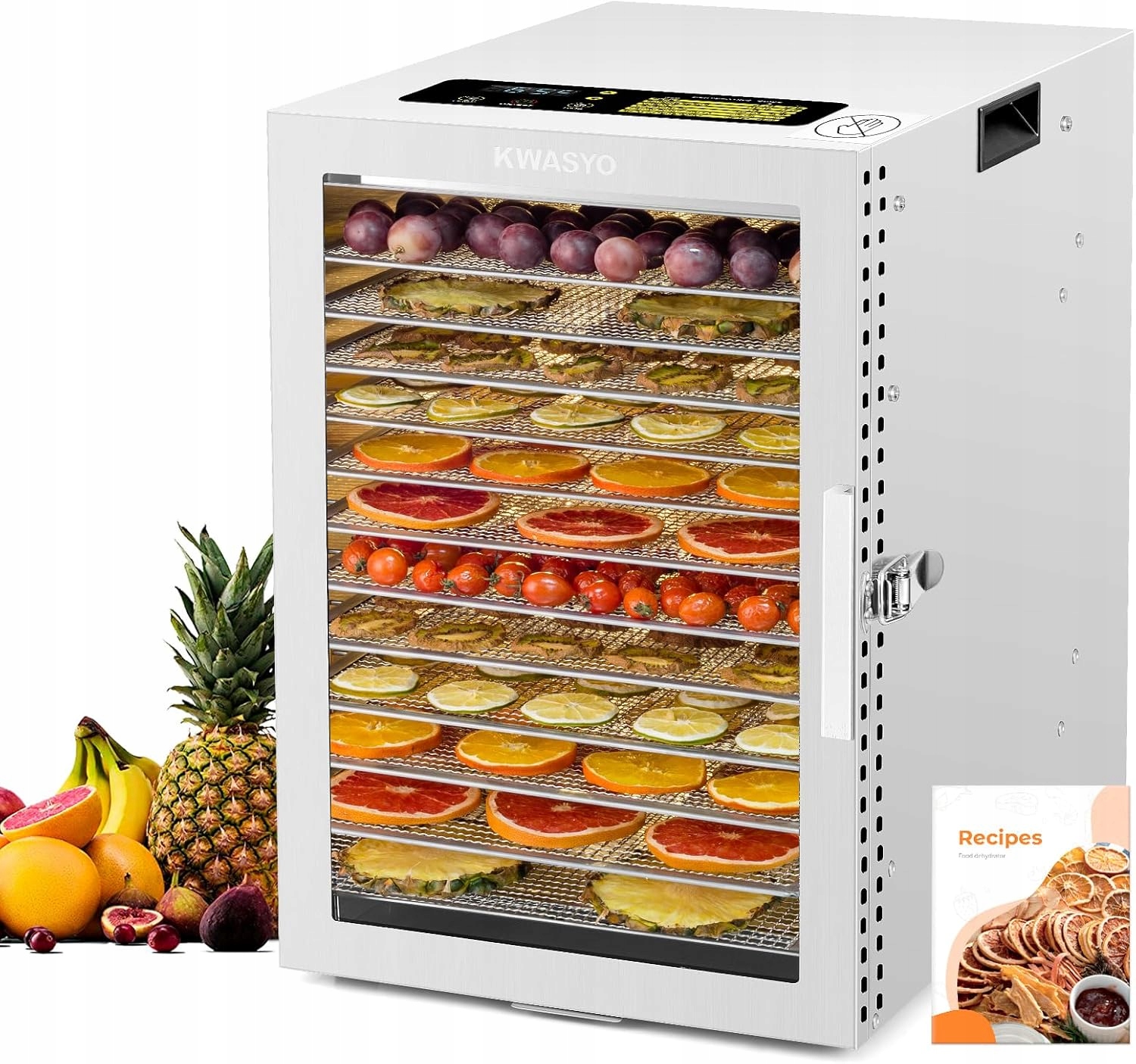 Сушарка Strople Strock, подвійний вентилятор на 360 °, ефективне сушіння, 12 рівнів, регулювання температури 20-90 ° C, 24-годинний таймер, захист від перегріву, ноутбук з рецептами