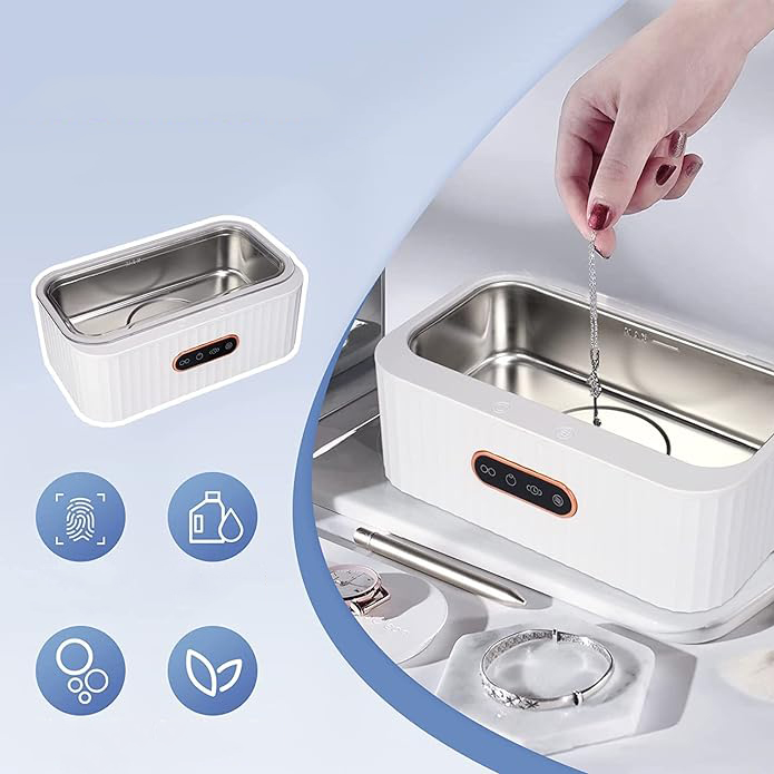 Маленький і портативний, практичний дизайн для сімейного чи офісного використання. Цей ультразвуковий очищувач ідеально підходить для щоденного використання як очищувач каблучок, ювелірних виробів, окулярів, зубних протезів/ручок. Очищає всі важкодоступні місця.
