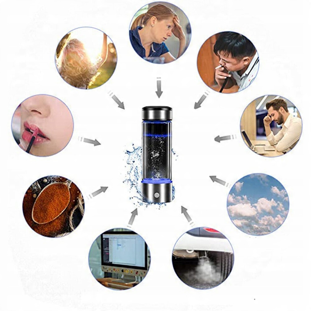 PRZENOŚNY BOGATY W WODÓR JONIZATOR WODY Z GENERATOREM KUBEK USB 420 ML