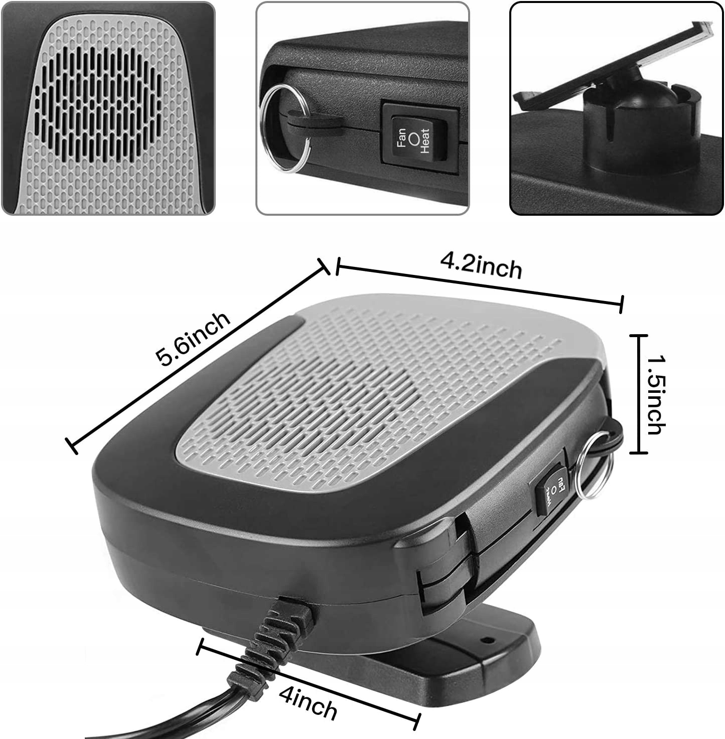 PRZENOŚNY GRZEJNIK SAMOCHODOWY, ODMRAŻACZ SZYBY, Z PODSTAWĄ OBROTOWĄ 360°