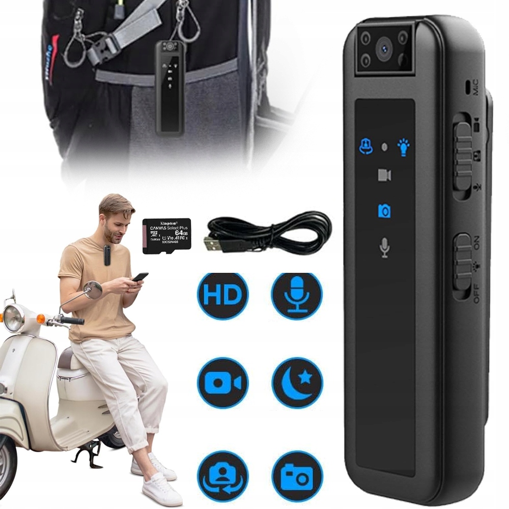 PRZENOŚNY MALA KAMERA WIDEO, MINI KAMERA NA CIALA, Z FUNKCJA NOKTOWIZORA