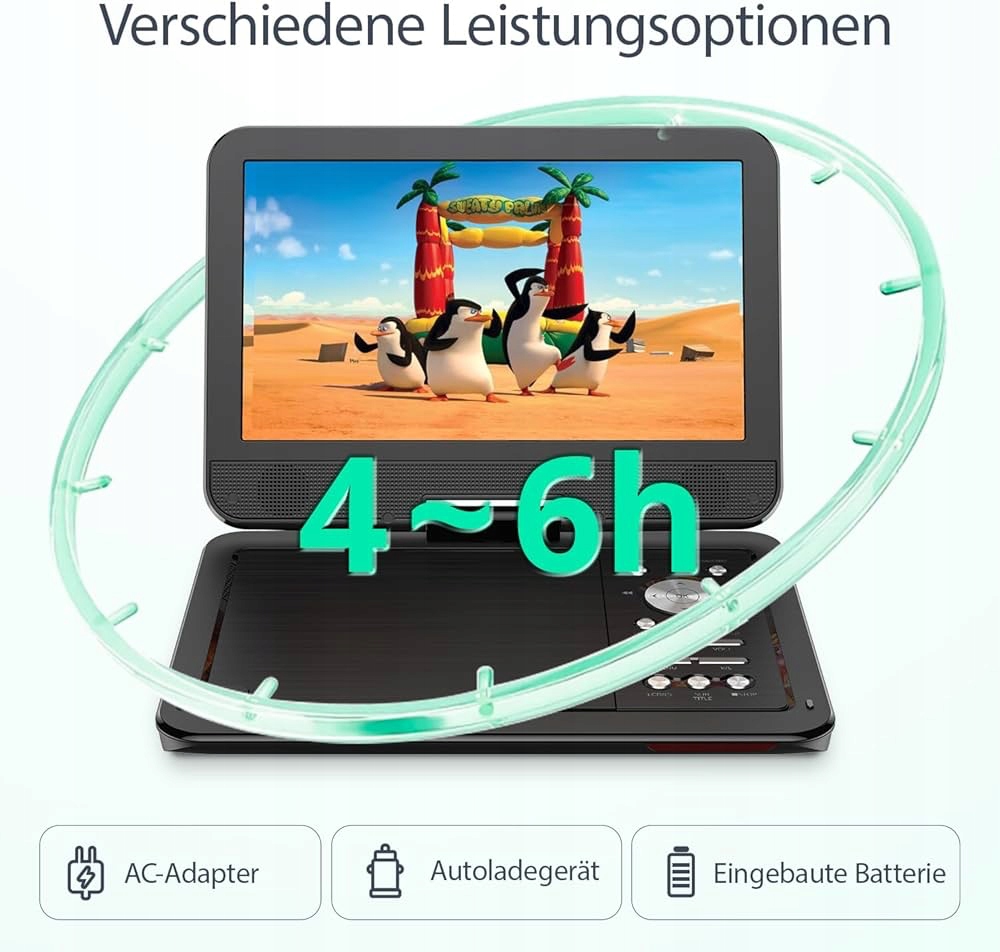 PRZENOŚNY ODTWARZACZ DVD 10.5” Z OBROTOWYM EKRANEM