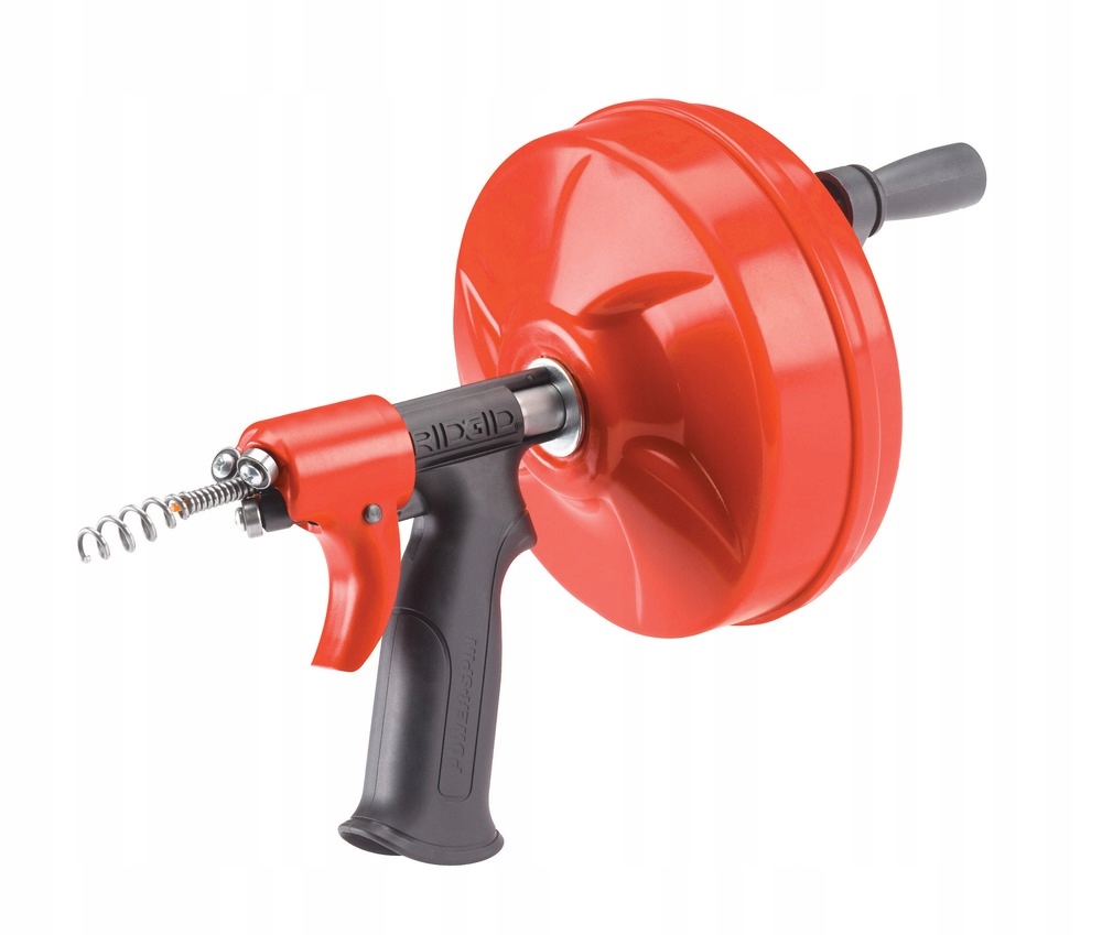 RIDGID Power Spin AUTOFEED - ручний штовхач з автоподачею. Приводиться в рух вручну або за допомогою викрутки чи шуруповерта/дрилі. Ідеально підходить для усунення засмічень у стоках кабін, умивальників, ванн, раковин, пралень тощо.