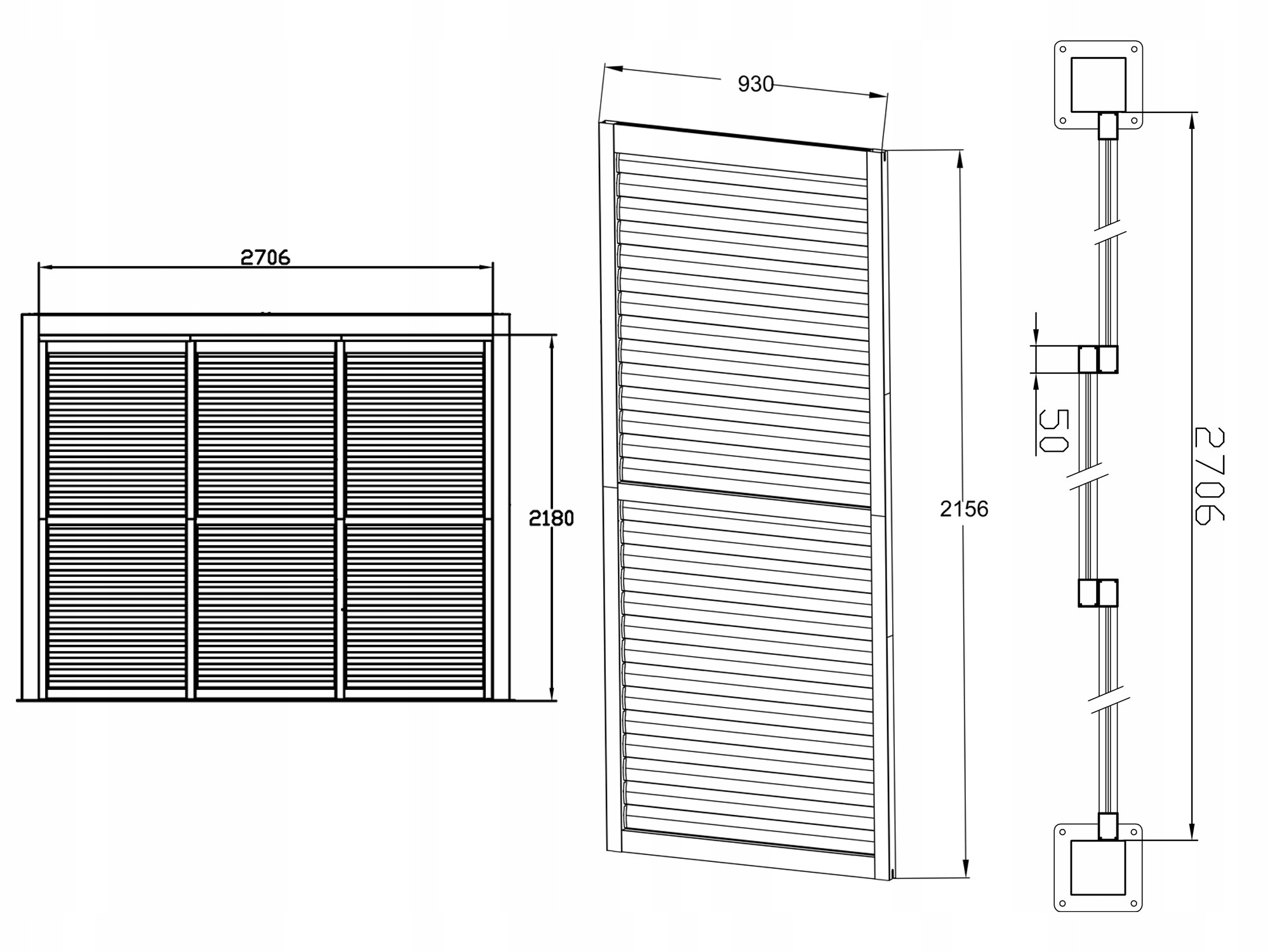 - Ширина 270 - складається з трьох стінок + система роликів для їх переміщення. Ними обшивають 3-метрову стіну перголи КЕА.