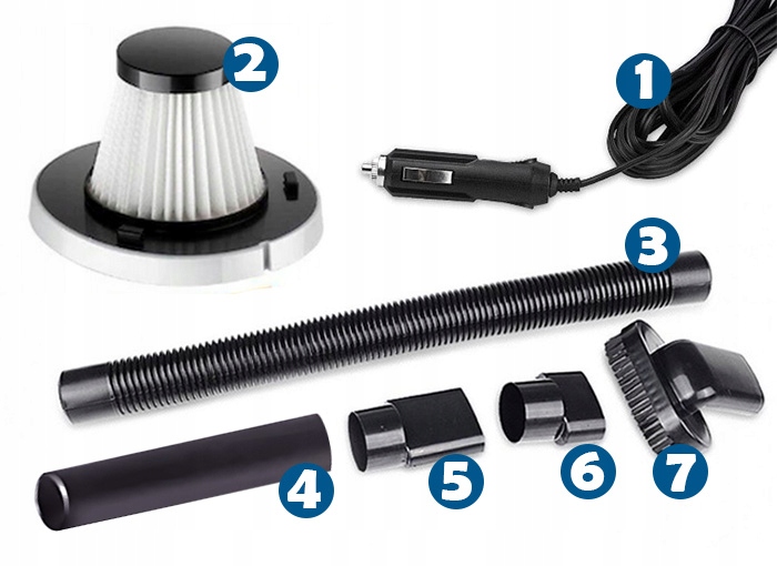Przewodowy Odkurzacz Samochodowy Ręczny Hepa MOCNY 120W Końcówki Przewód 5m + PAKIET OCHRONY - GWARANCJA NA 2 LATA