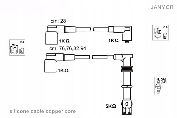 КОМПЛЕКТ КАБЕЛІВ ЗАПАЛЮВАННЯ. AUDI JANMOR - це продукт виробника, деталі якого ми встановлюємо щодня в нашому сервісі, в автомобілях наших клієнтів протягом багатьох років, ми знаємо, що працює b>, і це підтверджено задоволеністю наших клієнтів. Ми зосереджуємося на безпеці та якості деталей, тож ви можете бути впевнені, що продукція торгової марки JANMOR є 100% оригінальною!