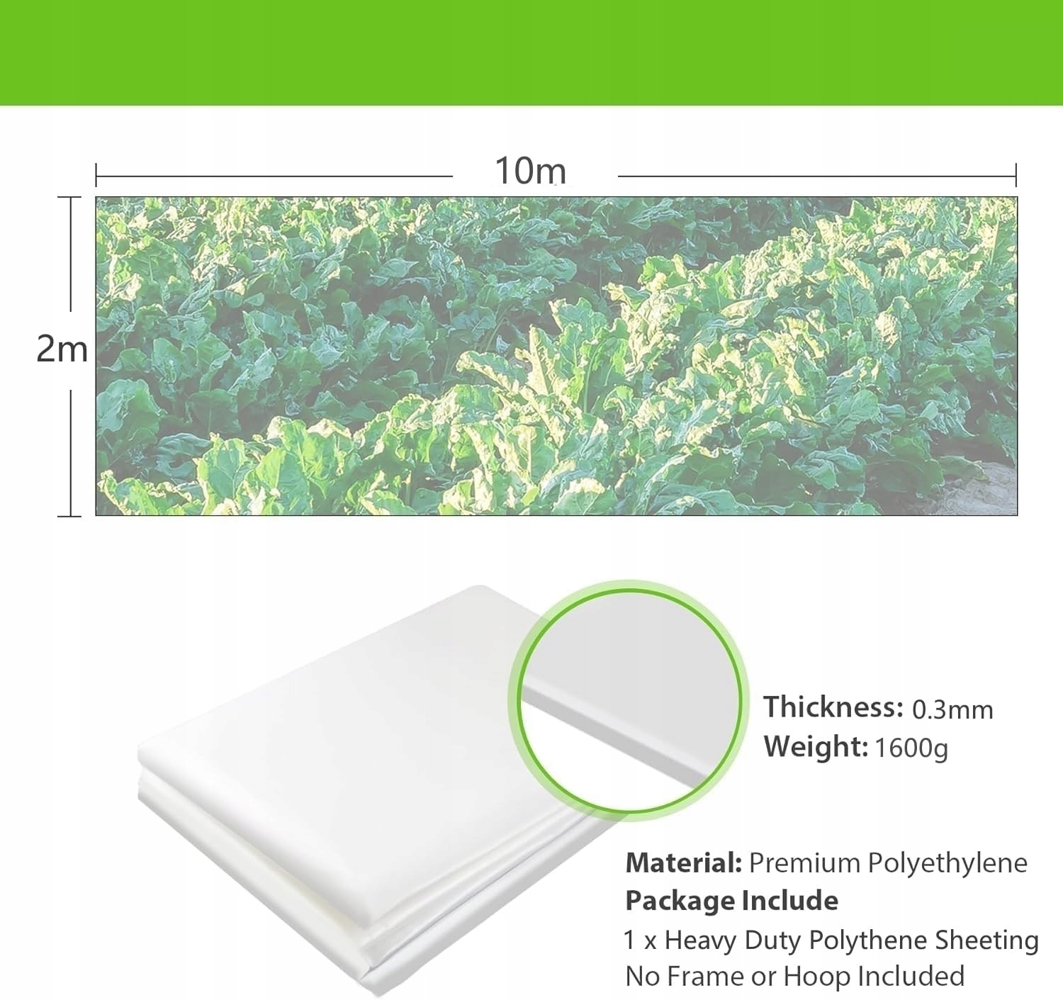- Плівка розміром 2x8 метрів забезпечує відповідна поверхня для покриття теплиці, що забезпечує ефективний захист більшої кількості рослин .