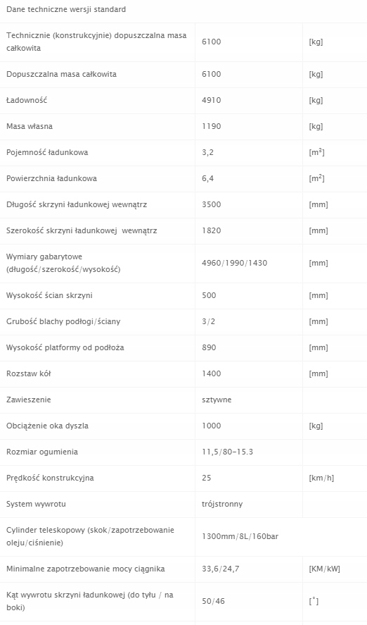 Przyczepa rolnicza jednoosiowa PRONAR T654/2 5T