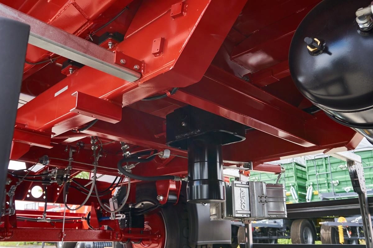 У причепі використовується вантажний ящик із міцними пластинами підлоги, а міцні профільовані стінки кріпляться болтами по центру. Оснащений тристороннім механізмом. Жолоб у задній стінці полегшує розвантаження врожаю та сільськогосподарських матеріалів або сипучих будівельних матеріалів (наприклад, піску), а відстань між платформою та землею (від 1142 мм до 1270 мм) значно полегшує завантаження. Конструкція рами шасі заснована на міцних прямокутних замкнутих профілях, що забезпечує довговічність.